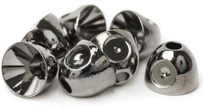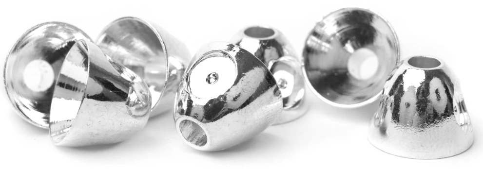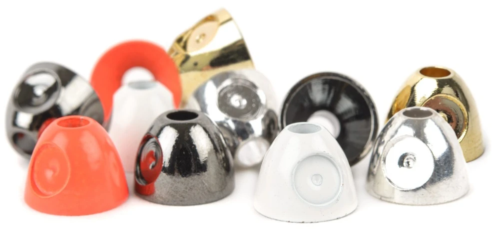 Perfectly shaped brass coneheads to give your tube flies and streamer patterns the right looks and balance. The metal colours are anodized and have a super nice shiny finish and the coloured ones are powder coated in clear bright colors, both of them are really durable to abrasion.