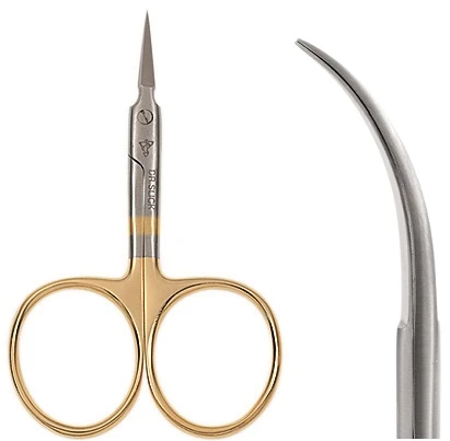 Short fine-bladed scissor designed for small flies and detail work. The notch at the base of the blades is designed for cutting wire and lead. Excellent for natural materials and can handle most synthetics. Great scissor for in-hand tyers.