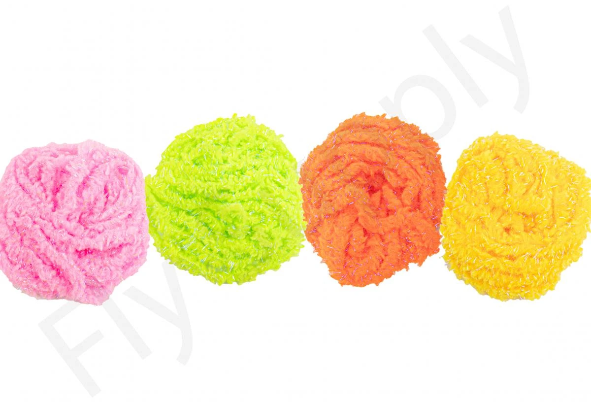 These new fibres add another dimension in the water, giving off a UV purple flash. Electric Eggstasy UV Yarn  is available in many different colours.