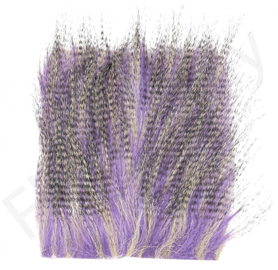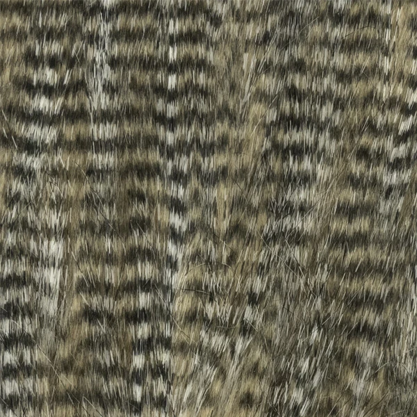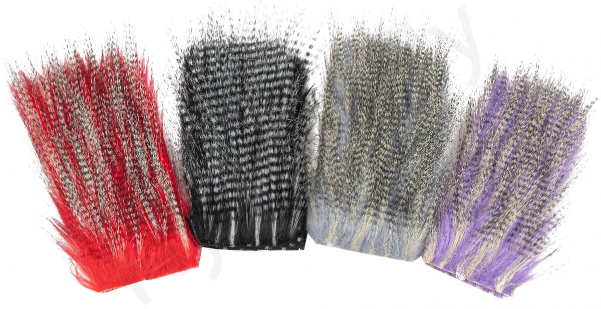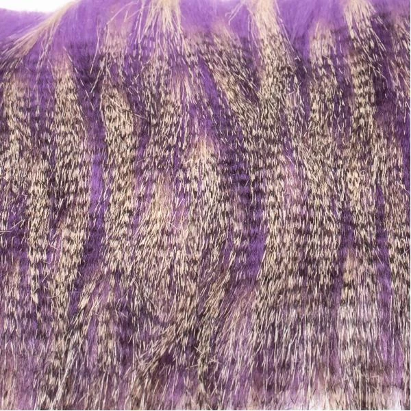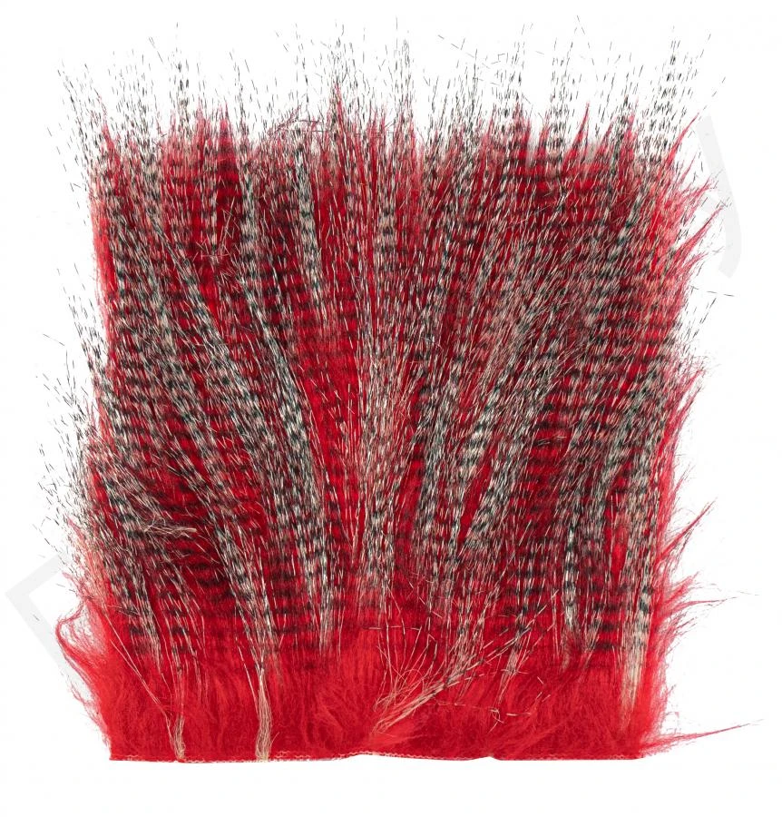 Black barred synthetic hair with underfur on a 12 x 13 cm woven carpet.