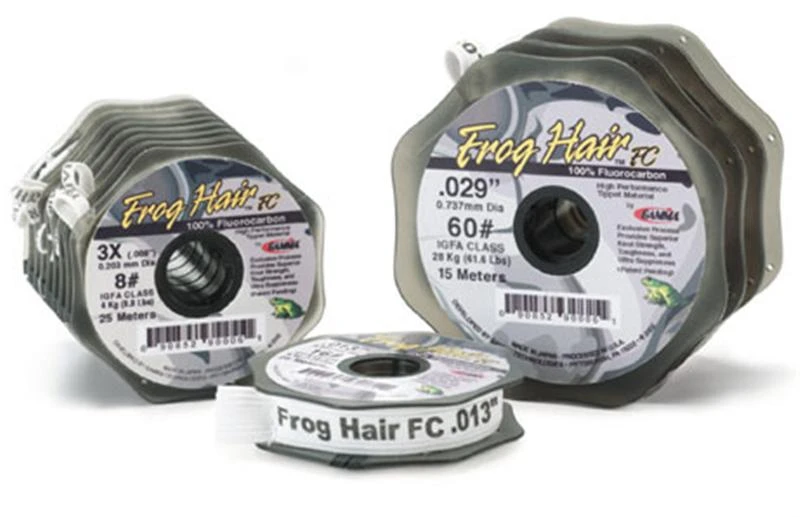 These combined properties make Frog Hair products stand out with head and shoulders above all other leader and tippet materials. Frog Hair Fluorocarbon Tippet has by far the best fish fighting properties of all fluorocarbon materials, nylons and leaders on the market.