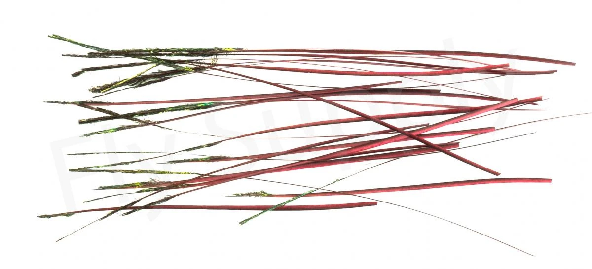 The quill comes from peacock eyes and is hand stripped, which eliminates the problems of cracking as when bleached or chemically stripped.