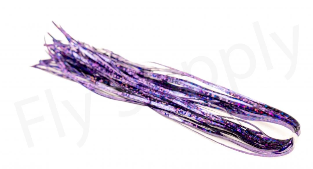 The Holographic Fibers 1/16 inch are made of a flat film with holographic effects, created by using lasers. The Holographic Fibers 1/16 inch are suitable for tying both ribbing and streamer bodies, it is an indispensable material for providing a touch of shine and can be used together with many other fibres, including Crystal Flash, Glossy Flash, Crimpy Flash, or even natural fibres like marabou in streamer tails.