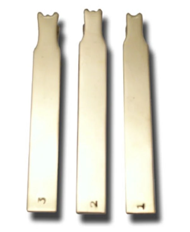 Set of 3 different sizes brass tools to burn wings or wing cases.