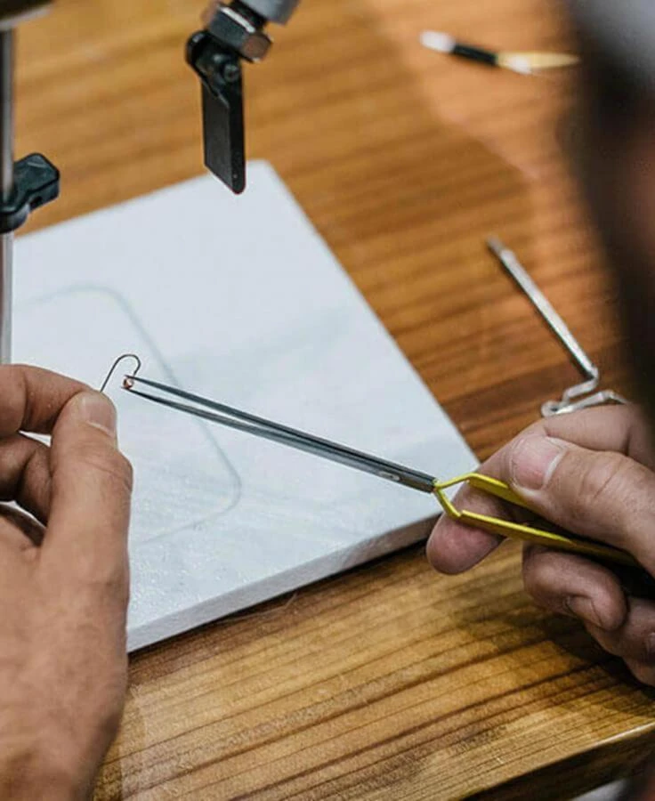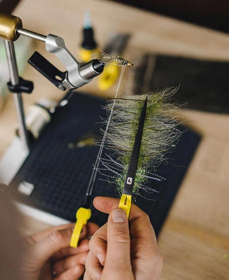An oversized tweezer that does everything from picking up hooks and beads, retaining materials for even the largest dubbing loops/composite loops, and holding materials for dubbing brushes