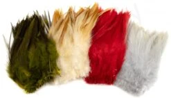 Premium Rooster Saddles. Each pack is filled with the highest quality feathers! These Strung Rooster Saddles are very long and come on a braid so it’s easy to select a few feathers. Used for tails, wings, throats, collwars, and palmered hackles. Good for pike streamers, bass, and saltwater flies. Great for wooly buggers.