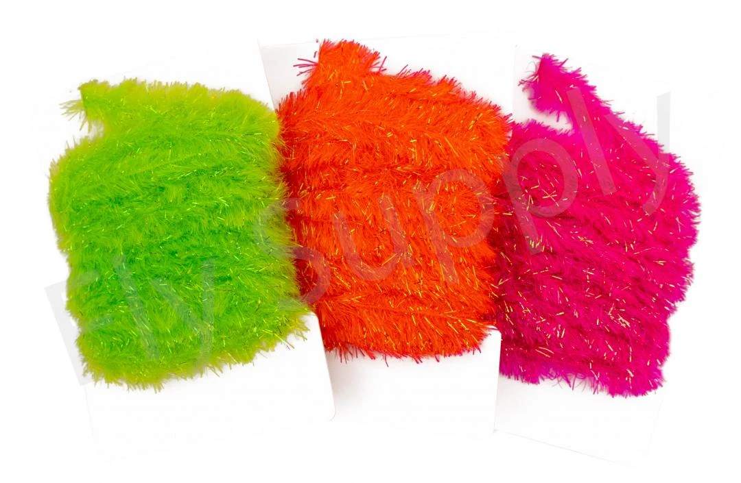 An extremely dense chenille made with a blend of translucent and rainbow fibres, which are perfectly anchored thanks to the use of special technological materials, thus preventing them from being lost during use.