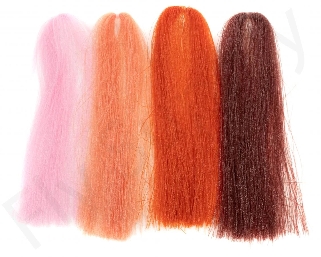 An extremely shiny material that comes packaged in hanks in order to allow it to even be used for streamers, whether on its own or mixed with other similar materials.
