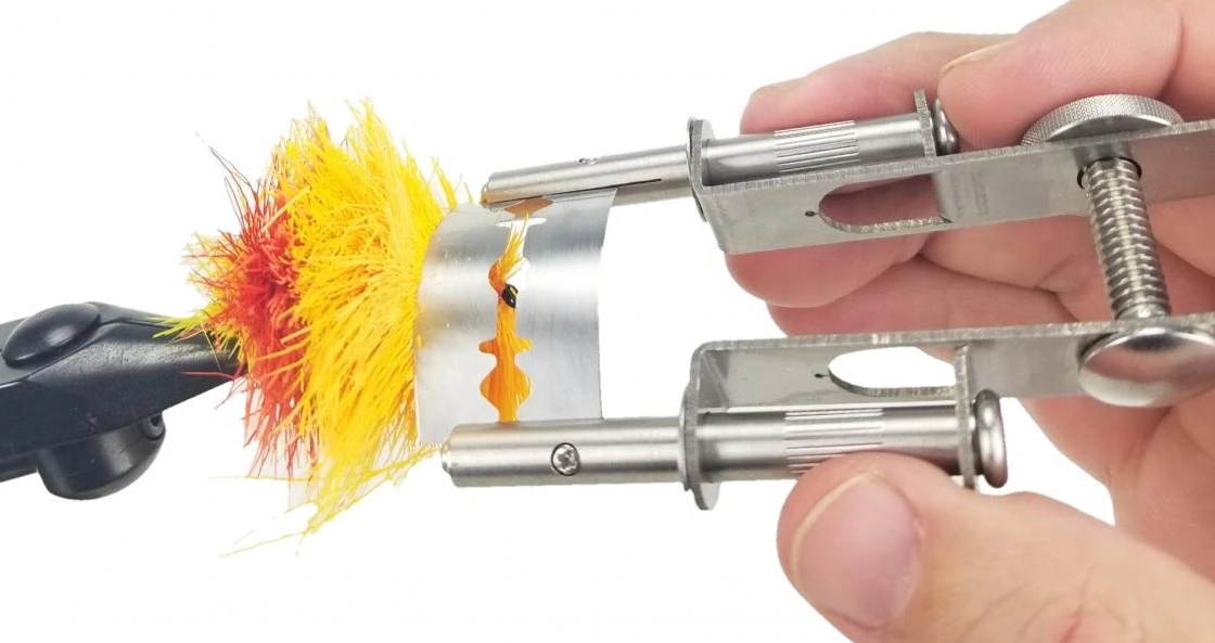 The TyWheel Trimmer provides the tyer the ability to hold a set curvature during the cutting process which helps one generate a more symmetrical group of flies.