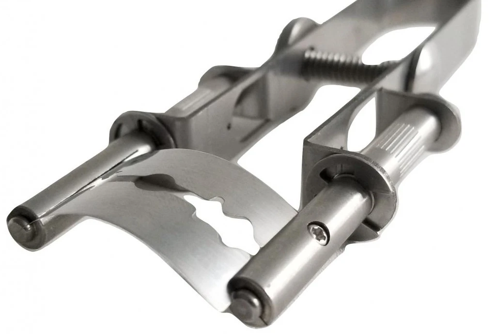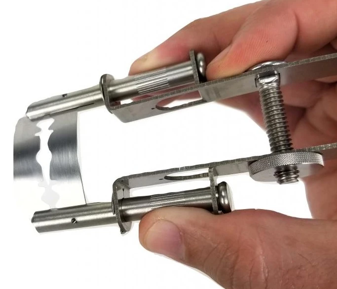 Freehand: leave the knurled tension nut on the handle loose so the blade remains strait in the trimmer. Hold the trimmer in your preferred hand and squeeze the handle like a pair of tweezers to reach your desired blade curvature.