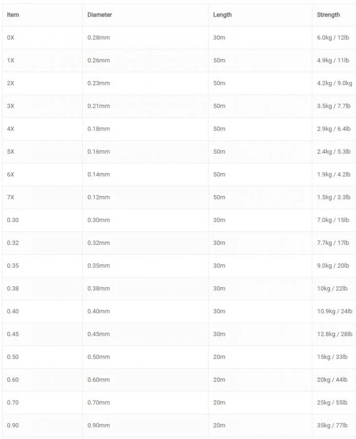 - Medium stiff fluorocarbon with exceptionally high knot and tensile strength