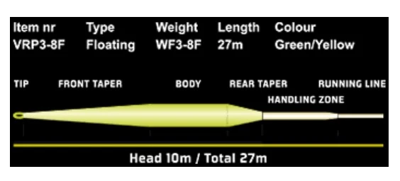 - The head is 10 meters / 30.5 feet long and this is therefore a great all-round fly line