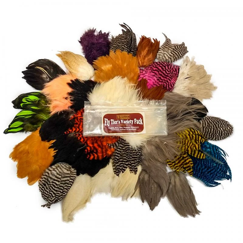 The Fly Tier’s Variety Pack was developed to offer a low-cost, superior-quality product for the budget-minded fly tier. This variety pack fits great for different streamers, leeches and other dry flies, because it contains plenty of soft and living feathers.